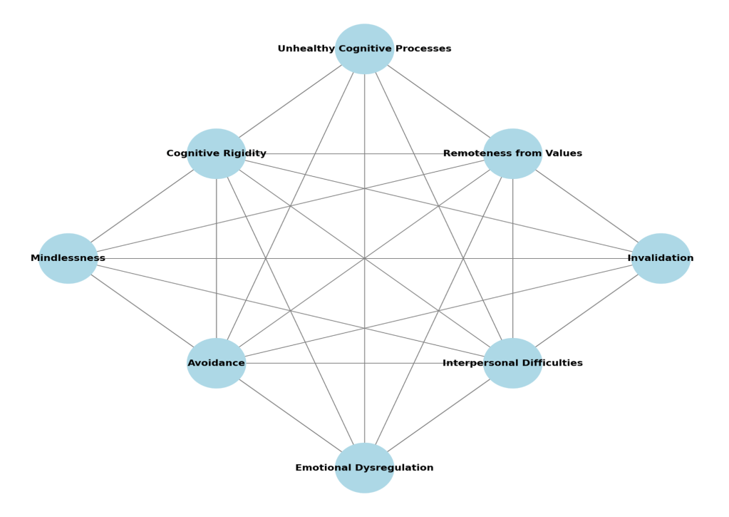 ACT is commonly explained through six core processes, often called the hexaflex: